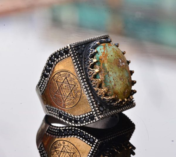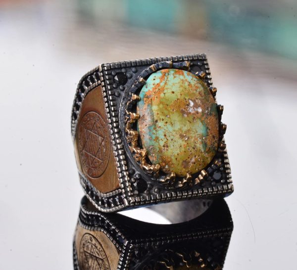Gerçek Arizona Turkuaz Taş Yüzük, David of Star Yüzüğü, Boho Yüzük