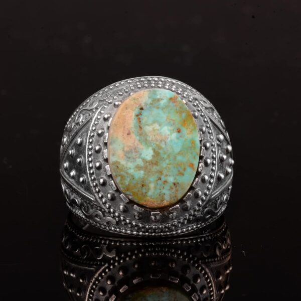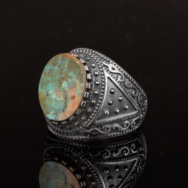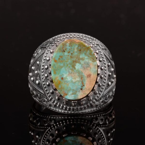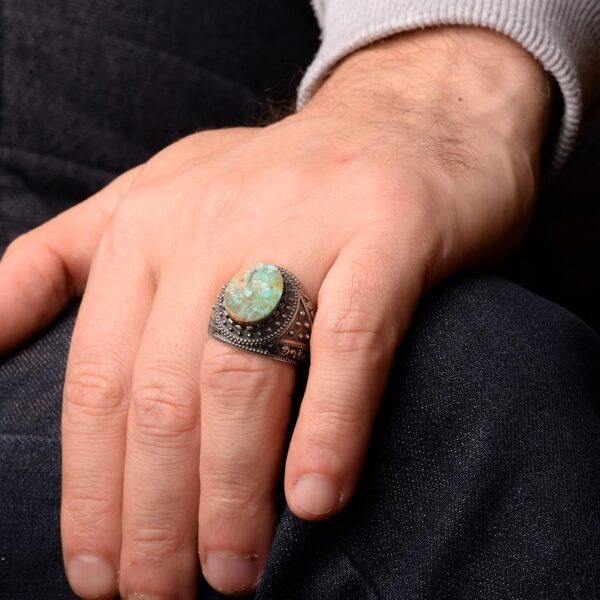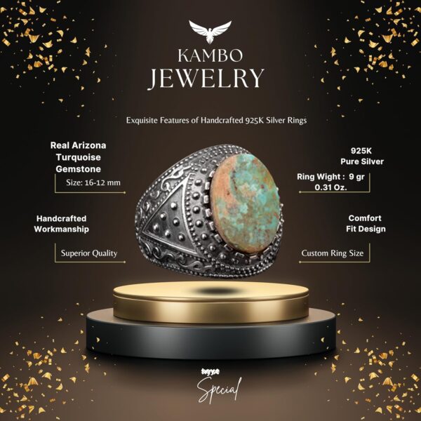 Gerçek Arizona Turkuaz Taş Yüzük, Erkekler İçin Bizans Yüzüğü, 925 Ayar Gümüş Yüzük