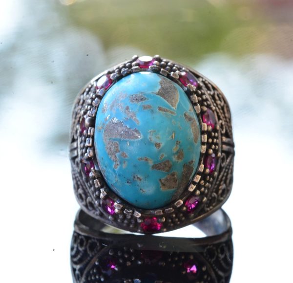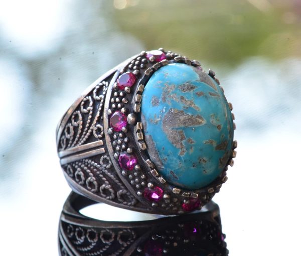 Gerçek Arizona Turkuaz Taş Yüzük, Sultan Yüzük, Gümüş Unisex Yüzük