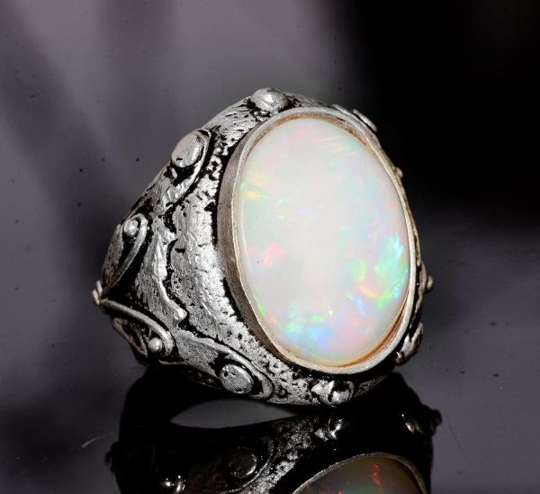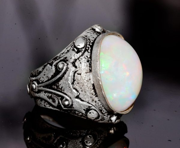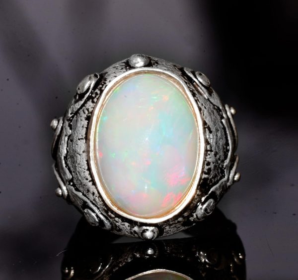 Gerçek Avustralya Opal Taşlı Yüzük, 11.15 Karat, Bizans Yüzüğü, 925 Ayar Gümüş Yüzük