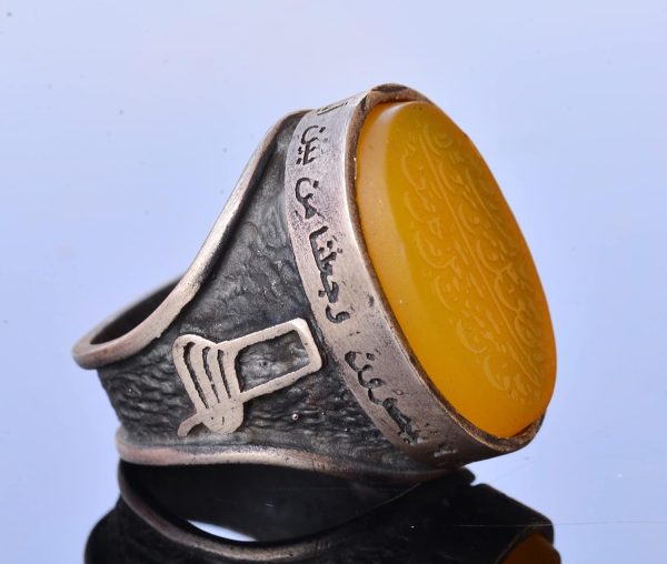 Gerçek Doğal Sarı Agat Taş Yüzük, 20.00 Karat, İslami Arap Yüzüğü, Gümüş Erkek Yüzüğü