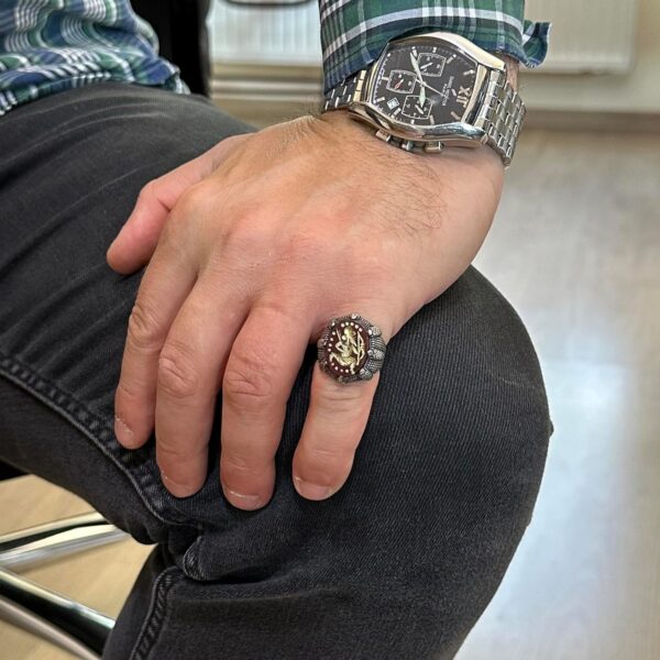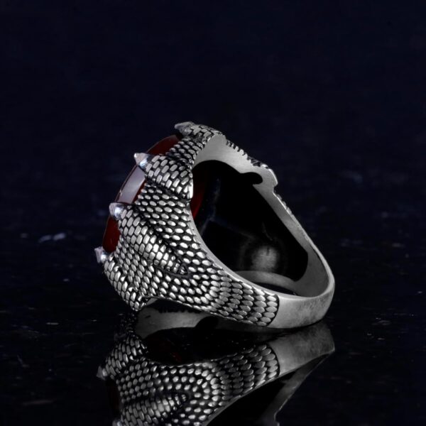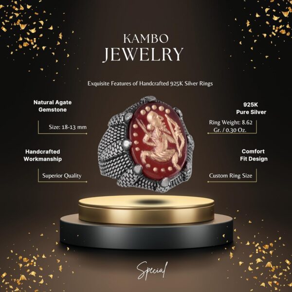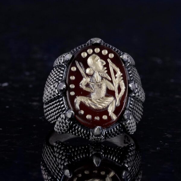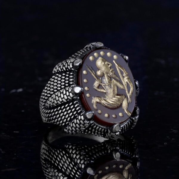 Gerçek Doğal Akik Taş Yüzük – 925 Ayar Gümüş Erkek Yüzük – Okçuluk Yüzüğü – Yerli Amerikan Yüzüğü
