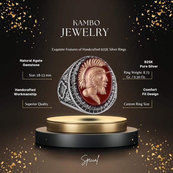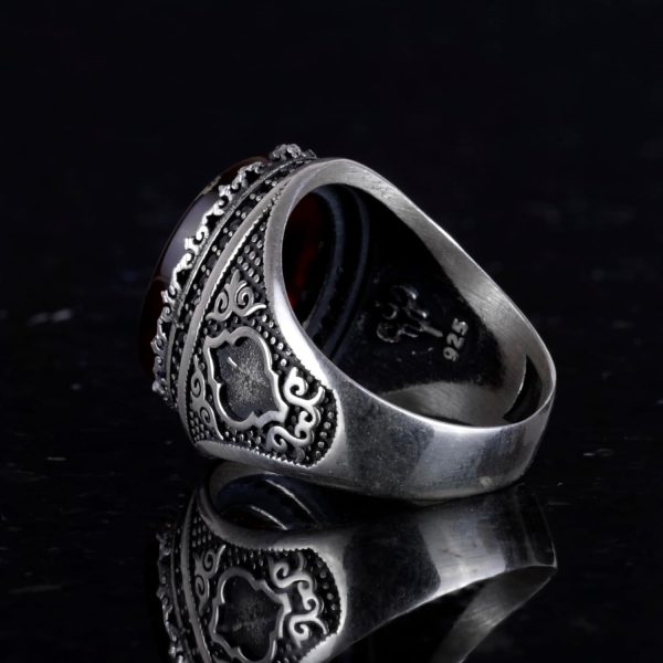 Gerçek Doğal Akik Taş Yüzük, Oymalı Taş Şaman Yüzüğü, 925 Ayar Gümüş Erkek Yüzüğü