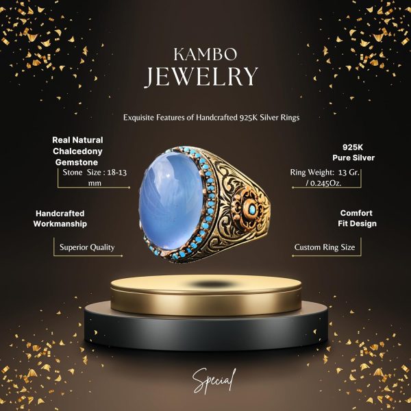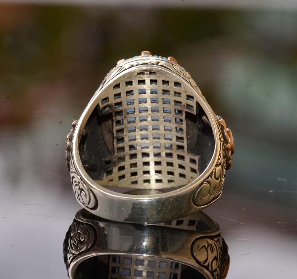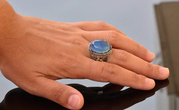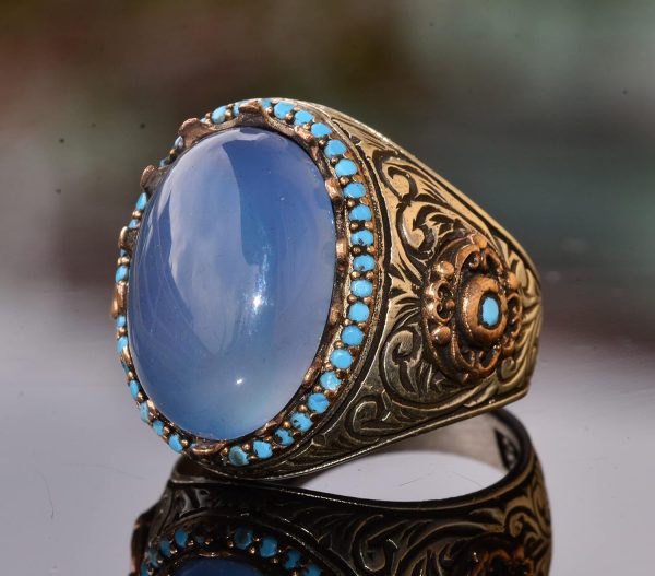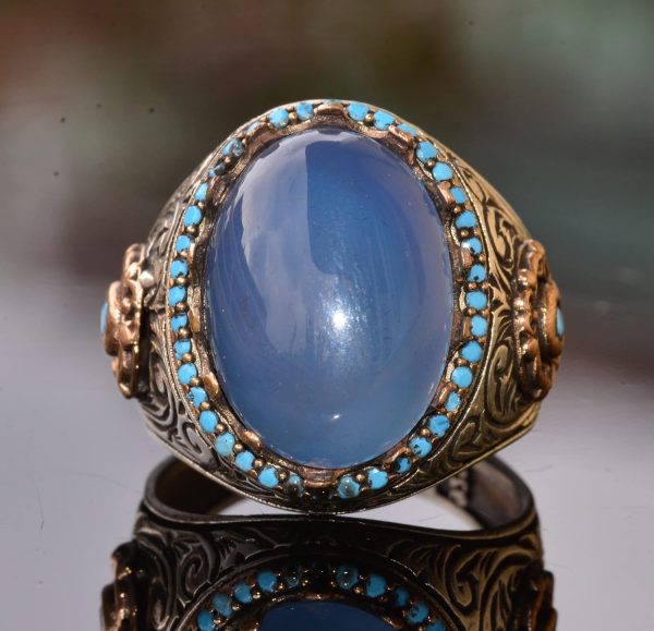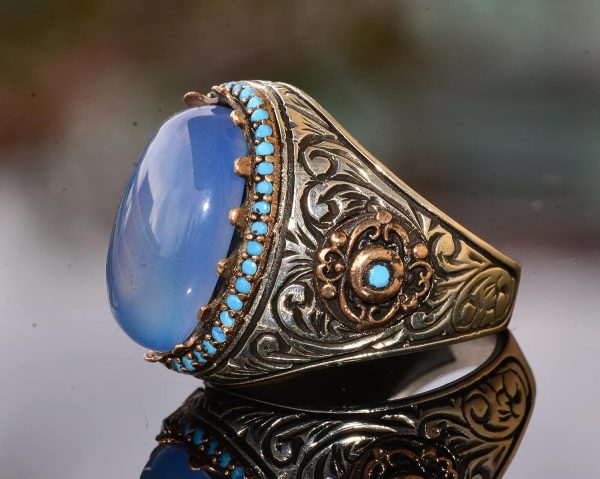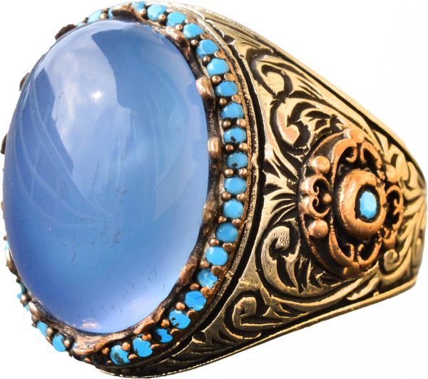 Doğal Akik Taşı: Bu yüzüğün merkezi, huzur verici mavi rengi ve iyileştirici özellikleri ile tanınan gerçek bir Akik taşıdır. Bu taşın duygusal denge, iç huzur ve koruma sağladığına inanılmaktadır, bu da onu değerli bir tılsım haline getirmektedir.