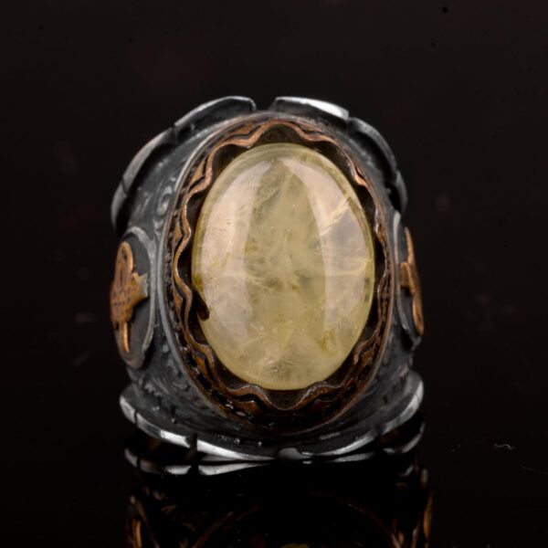 Gerçek Doğal Altın Rutile Kuvars Taş Yüzük, 925K Gümüş Yüzük, Erkek Gümüş Yüzük Ağırlığı: 15.02gr