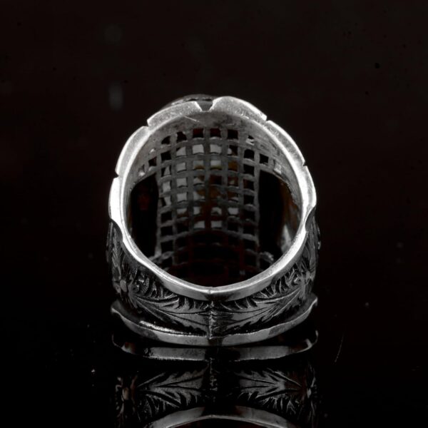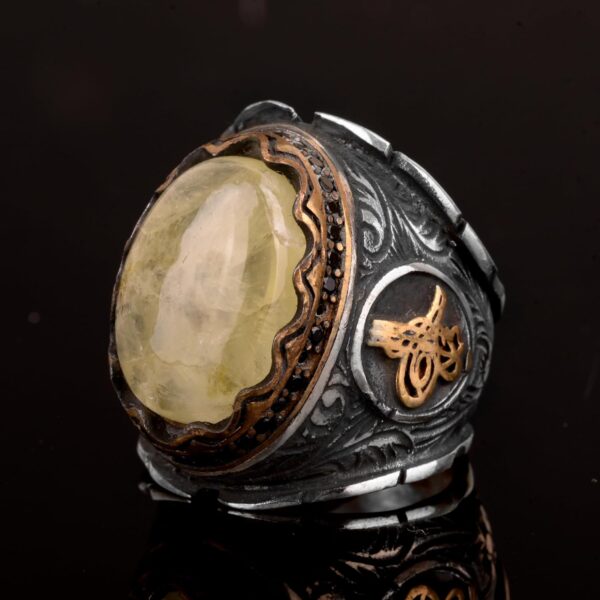 Gerçek Doğal Prehnite Taş Yüzük, 925 Ayar Gümüş Erkek Yüzük, Tugra Yüzük