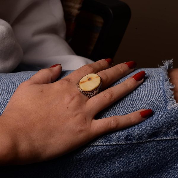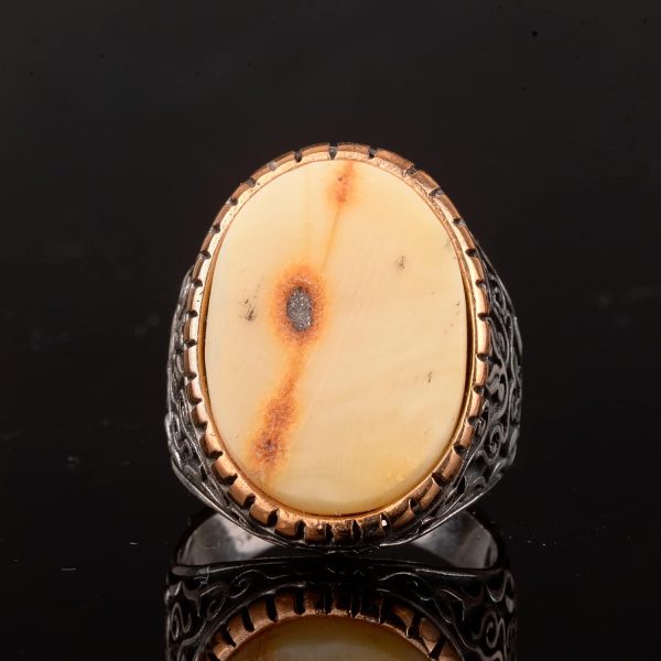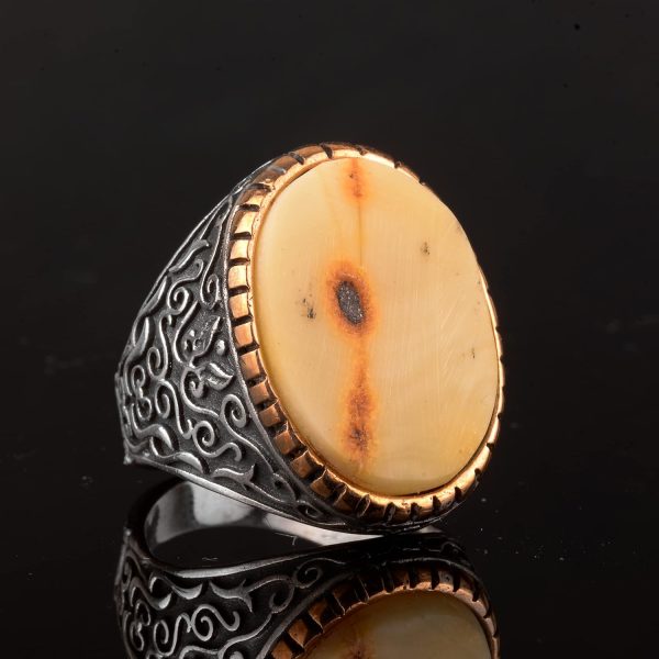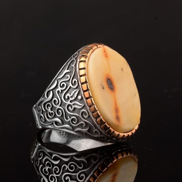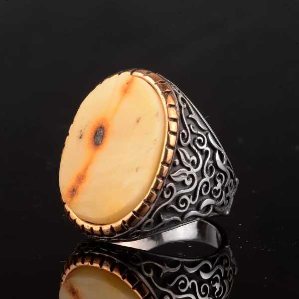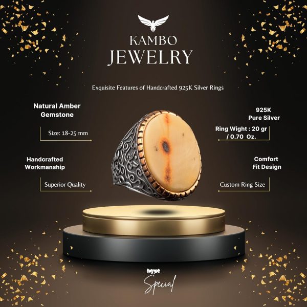Gerçek Doğal Amber Taş Yüzük, Büyük Yüzük, 925 Ayar Gümüş Yüzük Erkekler İçin