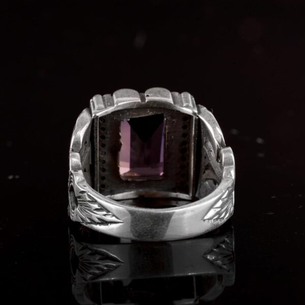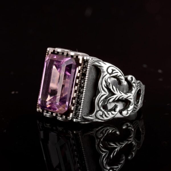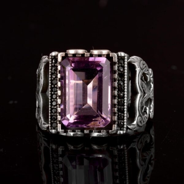 Gerçek Doğal Ametist Taşlı Yüzük, 925 Ayar Gümüş Erkek Yüzüğü