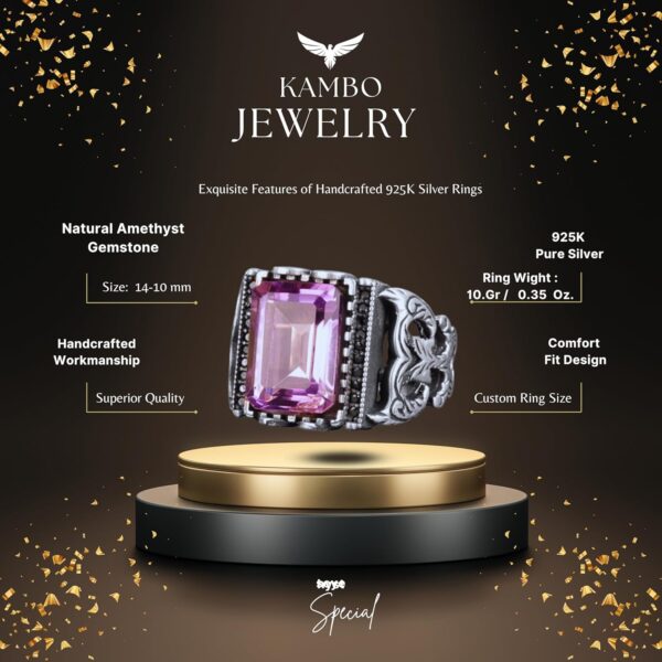 925 ayar gümüş erkek yüzüğü, Ametist Yüzüğü, Doğal Ametist ifade yüzüğü, 925 ayar gümüş takı, Doğum taşı yüzüğü, Gerçek Doğal Ametist Taş Yüzüğü, Yüzük Ağırlığı: 11.14 ct: 7.45