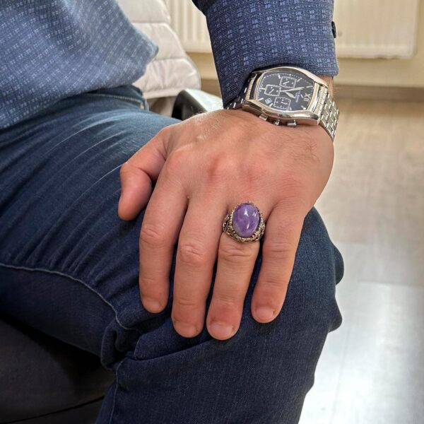 El yapımı Ametist Taşlı Yüzüğümüzün sakinleştirici ve sezgisel enerjilerini kucaklayın. En kaliteli 925K solid gümüş ile tasarlanan bu yüzük, zihni uyaran ve duyguları yatıştırma yeteneği ile bilinen Ametist taşını barındırmaktadır. Koruyucu bir taş olarak bilinen Ametist, negatif enerjilere karşı koruma sağlar ve ruhsal farkındalığı artırır. Her bir yüzük, sadece aksesuar değil, aynı zamanda iç huzur ve ruhsal büyümenin sembolü olan parçalar yaratma konusundaki kararlılığımızı yansıtan bir tasarım başyapıtıdır. Yüzük Ağırlığı: 14gr Taş Boyutu: 15-20mm