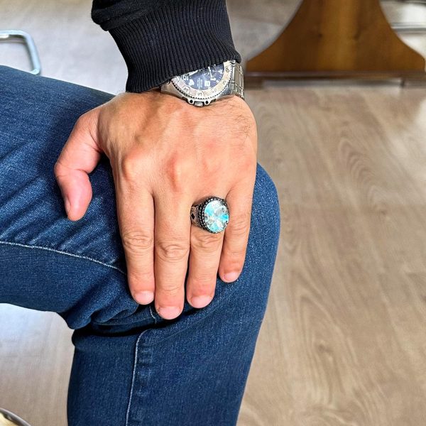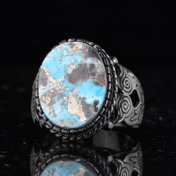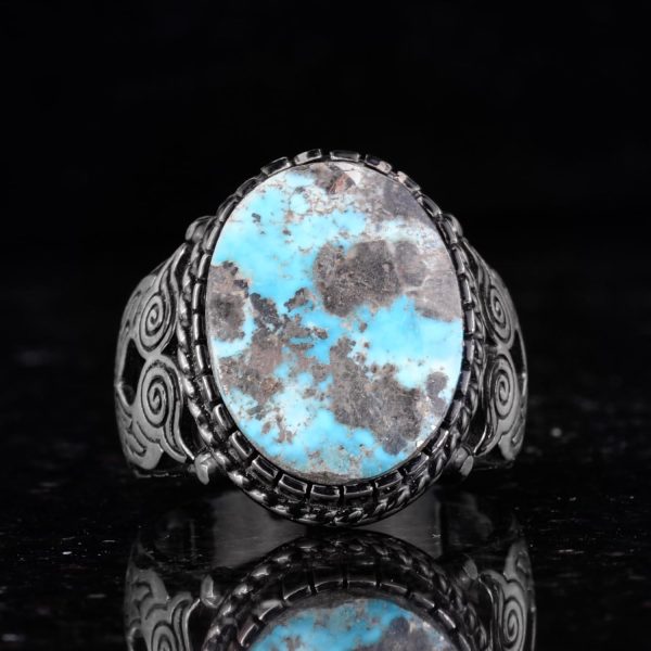 Gerçek Doğal Baykuş Figürlü Arizona Turkuaz Taşlı Gümüş Erkek Yüzük, doğal taşların güzelliğini vurgulayan olağanüstü bir aksesuardır. Bu yüzük, canlı mavi renkleri ve karmaşık matris desenleri ile ünlü benzersiz bir baykuş figürüyle süslenmiş muhteşem bir Arizona turkuaz taşına sahiptir.
