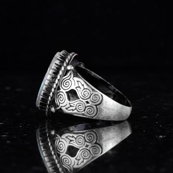 Gerçek Doğal Arizona Turkuaz Baykuş Figürlü Taş Yüzük, Sterlin Gümüş Erkek Yüzüğü – El Yapımı Tasarım (Stil-3)
