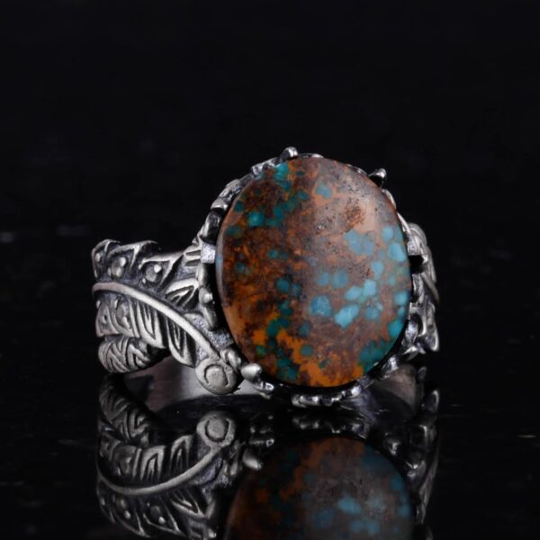 Erkekler İçin Doğal Arizona Turkuaz Taş Yüzük – 925 Ayar Gümüş Özel Oymalı