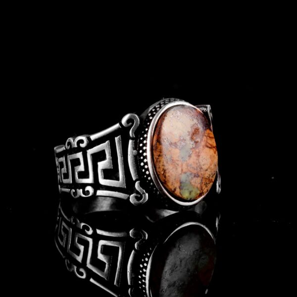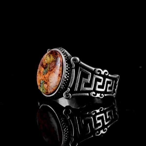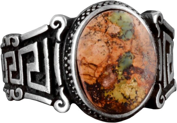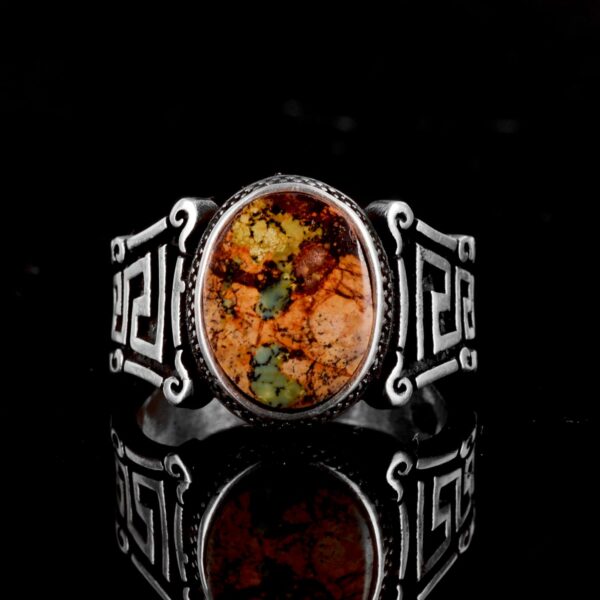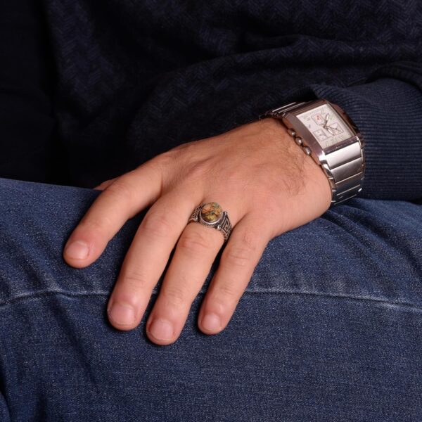 Gerçek Doğal Arizona Turkuaz Taş Yüzük, 925 Ayar Gümüş Erkek Yüzük (Stil-3)