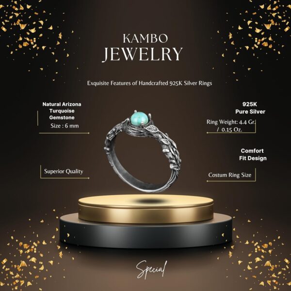 Gerçek Doğal Arizona Turkuaz Taş Yüzük, 925 Ayar Gümüş Yüzük Kadınlar İçin Yüzük