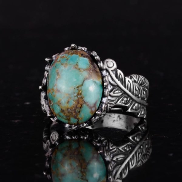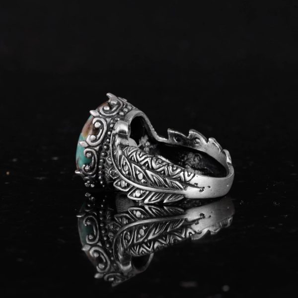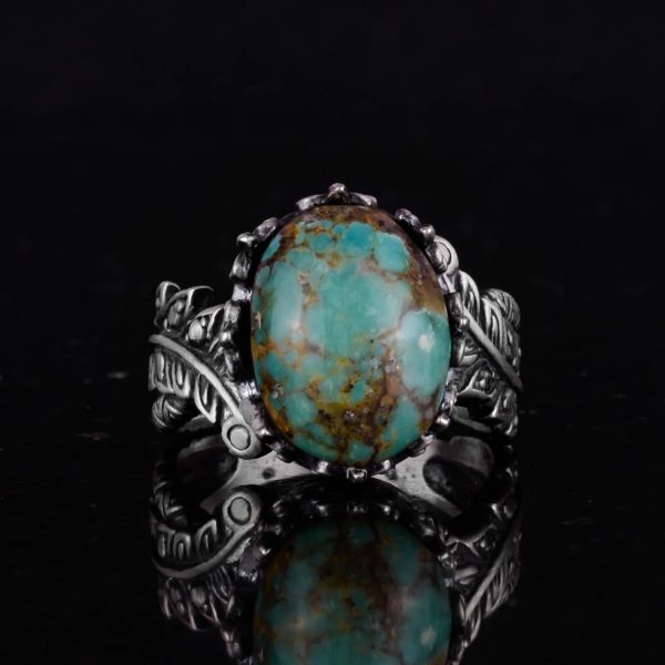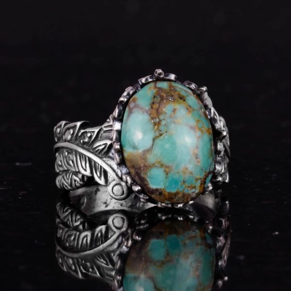Erkekler için Doğal Arizona Turkuaz Taş Yüzük – 925 Ayar Gümüş Özel Oymalı