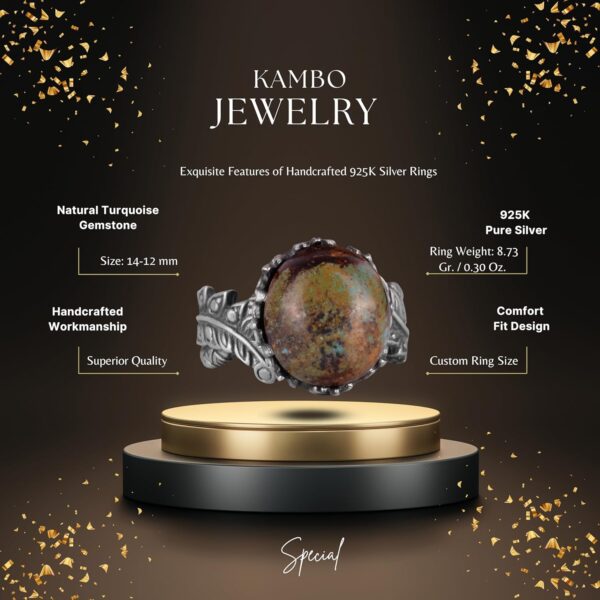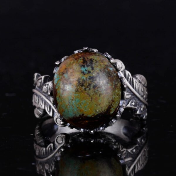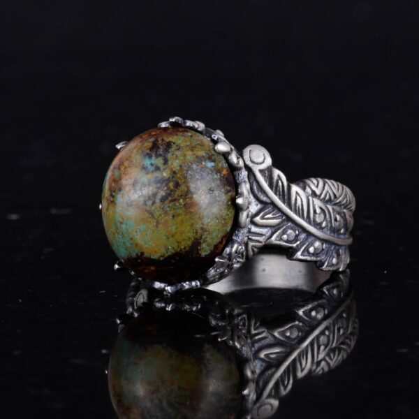 Bu muhteşem 925 ayar gümüş yüzük ile doğal Arizona Turkuaz’ın zarafetini deneyimleyin. Yüzük, canlı mavi-yeşil rengi ve eşsiz matris desenleri ile bilinen güzelce parlatılmış gerçek bir Arizona Turkuaz taşına sahiptir. Doğal taşları takdir edenler için mükemmel olan bu yüzük, kişiye özel gravürü ve karmaşık tasarımıyla her kıyafete benzersiz bir dokunuş katmaktadır.