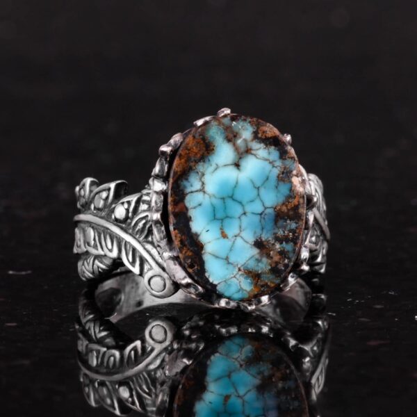 Erkekler için Doğal Arizona Turkuaz Taş Yüzük – 925 Ayar Gümüş Özel Gravürlü