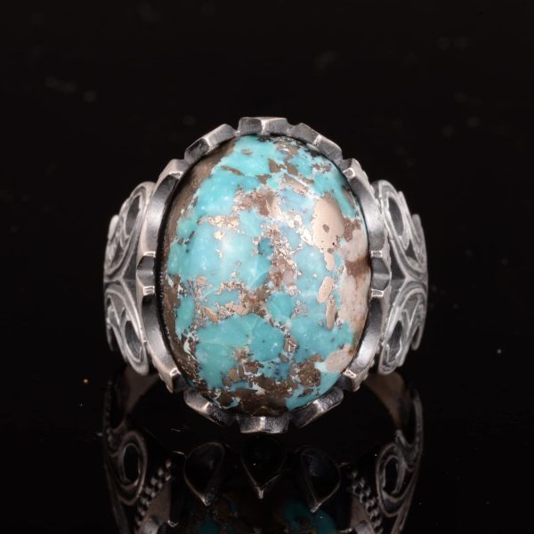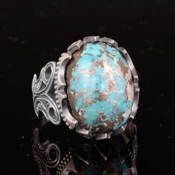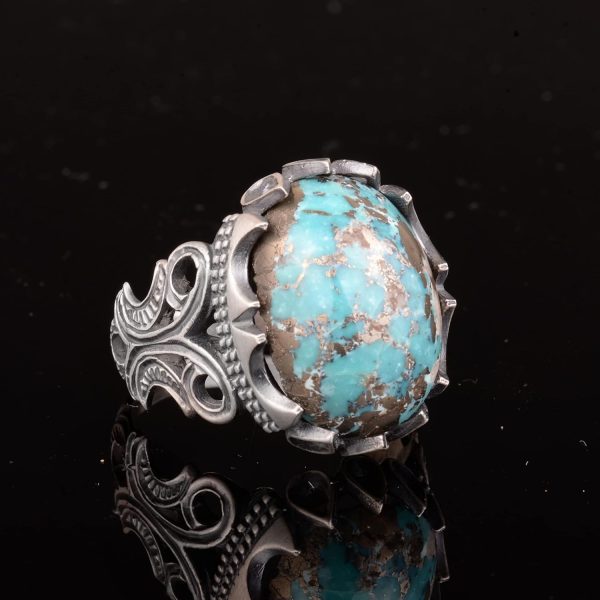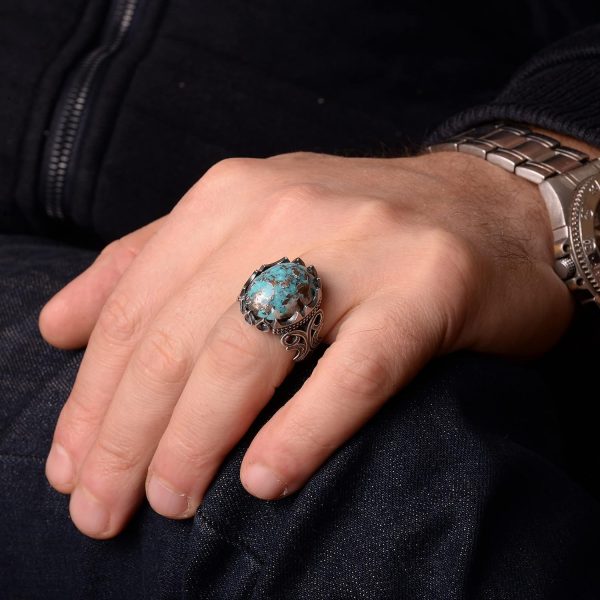 Bu muhteşem yüzük, yüksek kaliteli 925K gümüşten yapılmış olup, canlı mavi tonları ve karmaşık matris desenleri ile hayranlık uyandıran gerçek Arizona turkuaz taşına sahiptir. El yapımı işçilik her yüzüğün benzersiz bir başyapıt olmasını sağlar, turkuaz taşının doğal güzelliğini ve bireyselliğini vurgular.