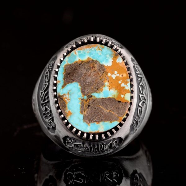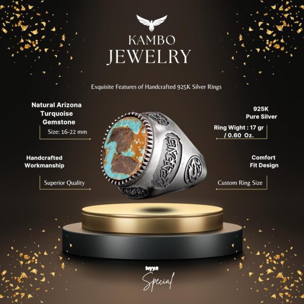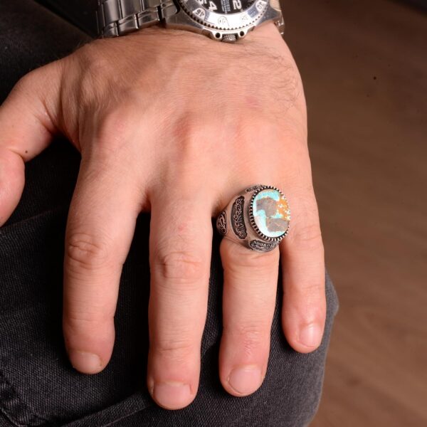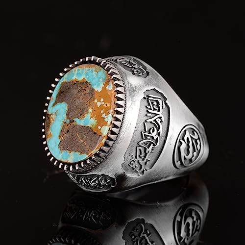 Gerçek Doğal Arizona Turkuaz Taş Yüzük, Erkek Yüzüğü, 925 Ayar Gümüş Yüzük