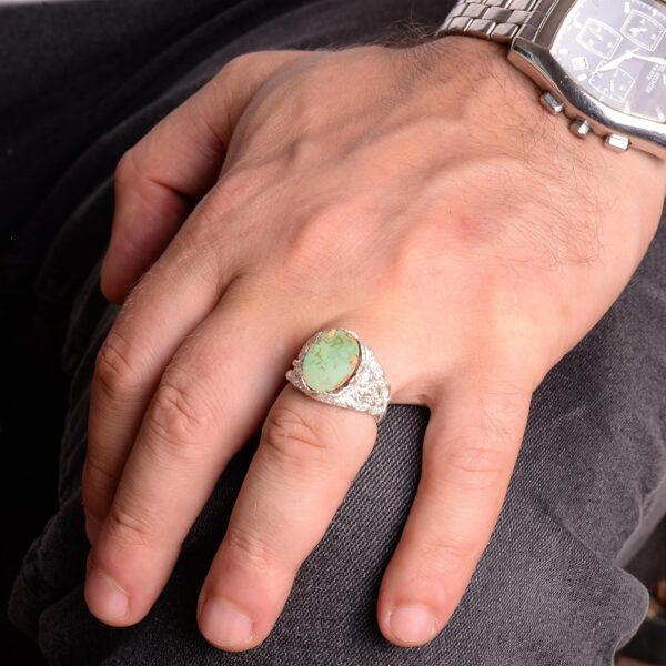 Gerçek Doğal Arizona Turkuaz Taş Yüzük, Erkekler İçin Hediye, 925 Ayar Gümüş Yüzük, Minimalist Yüzük (Stil-1)