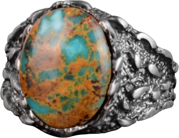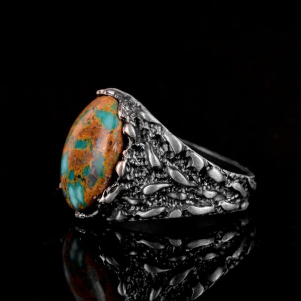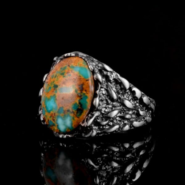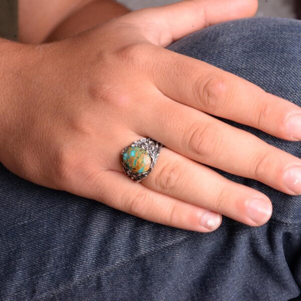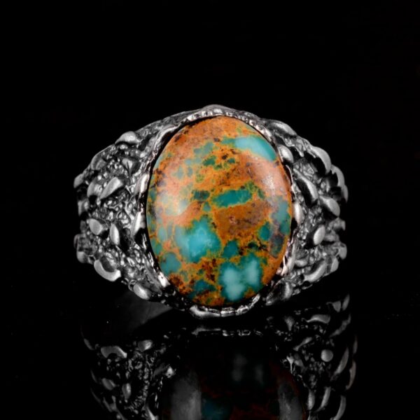 Gerçek Doğal Arizona Turkuaz Taş Yüzük, Erkekler İçin Hediye, 925 Ayar Gümüş Yüzük, Minimalist Yüzük (Stil-16)