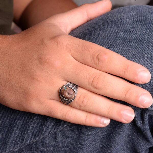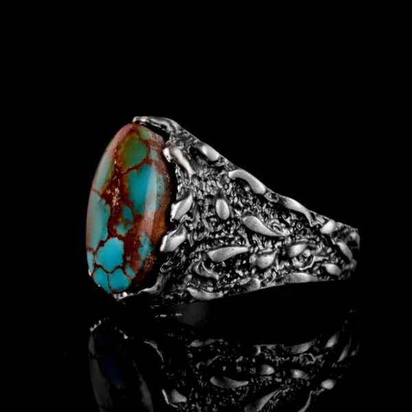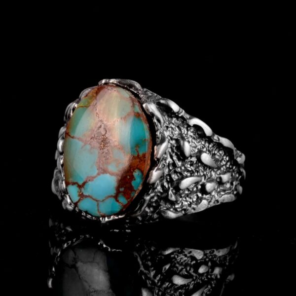 Gerçek Doğal Arizona Turkuaz Taş Yüzük, Erkekler İçin Hediye, 925 Ayar Gümüş Yüzük, Minimalist Yüzük (Stil-18)
