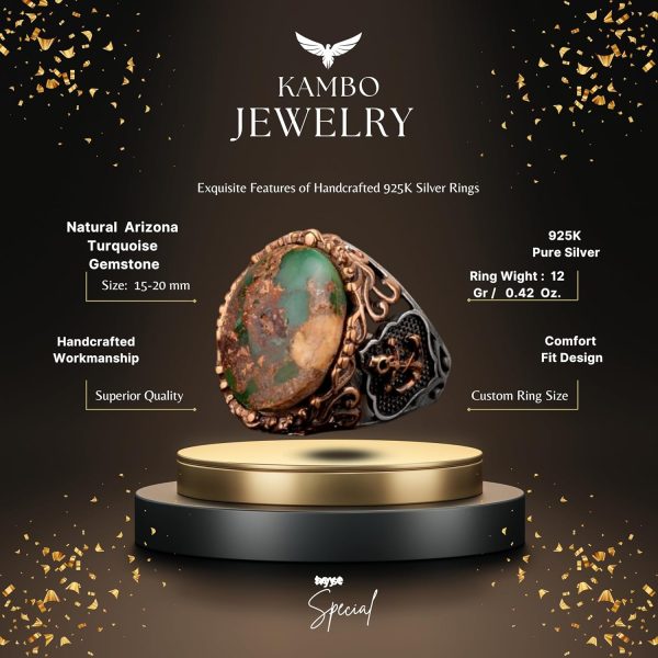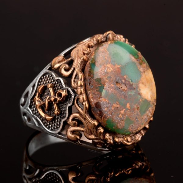 Gerçek Doğal Arizona Turkuaz Taş Yüzük, Erkekler İçin Sterlin Gümüş Yüzük, Çapa Yüzük