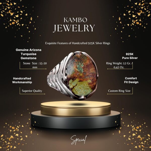 Gerçek Doğal Arizona Turkuaz Taş Yüzük – Gümüş Erkek Yüzüğü