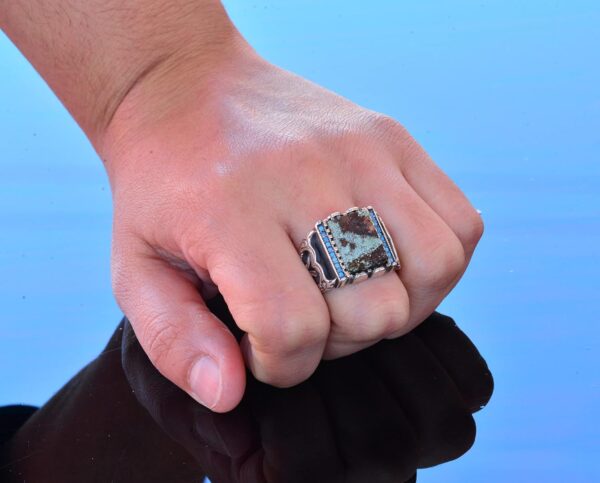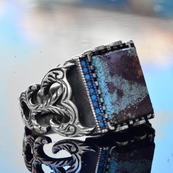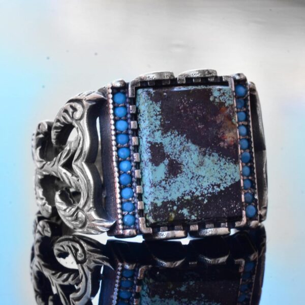 Gerçek Doğal Arizona Turkuaz Taş Yüzük – Ayar Gümüş Özel Erkek Yüzüğü