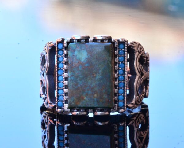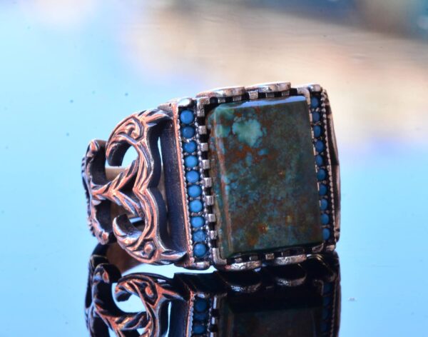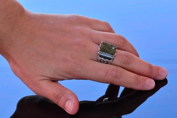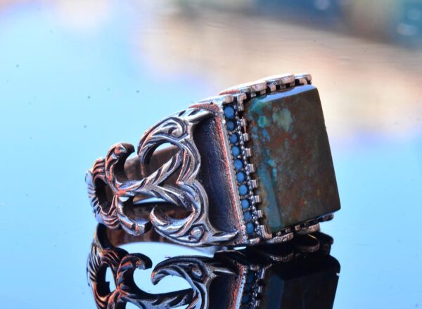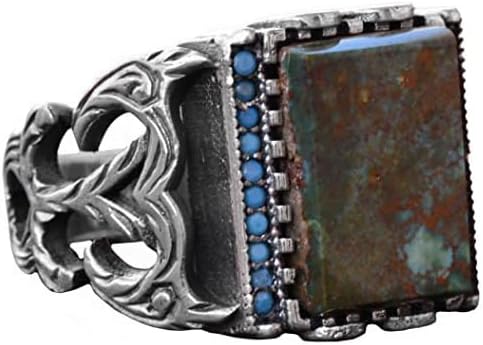 Gerçek Doğal Arizona Turkuaz Taş Yüzük – Gümüş Özelleştirilmiş Erkek Yüzüğü (Stil-2)