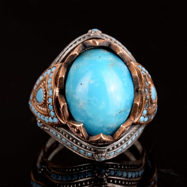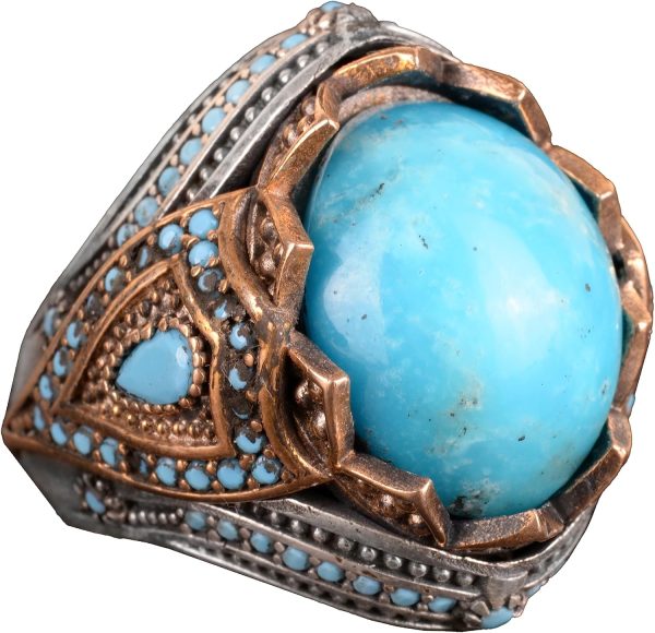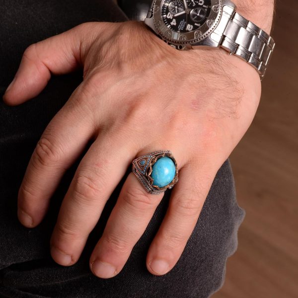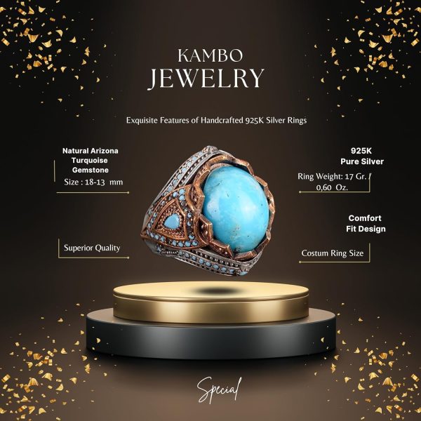 Gerçek Doğal Arizona Turkuaz Taş Yüzük, Kral Yüzüğü, Sultan Yüzüğü, 925 Ayar Gümüş Yüzük Erkekler İçin