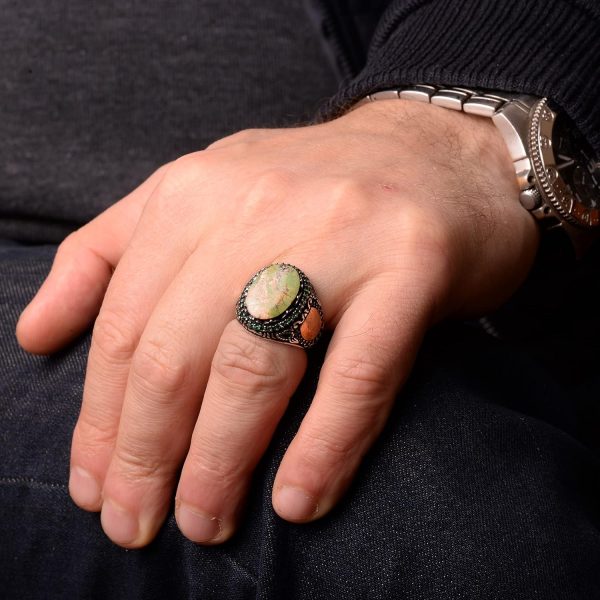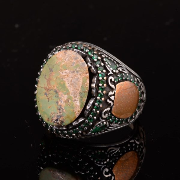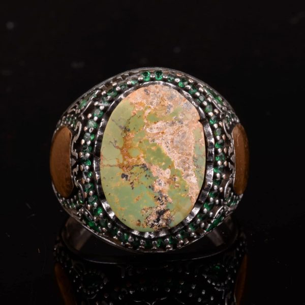 Gerçek Doğal Arizona Turkuaz Taş Yüzük, Minimalist Yüzük, 925 Ayar Gümüş Erkek Yüzük (Stil-2)