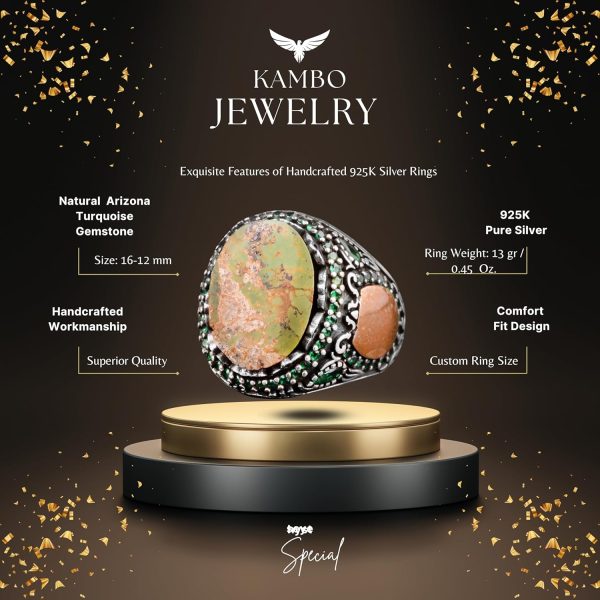 925 Ayar Gümüş Erkek Yüzüğü, Gerçek Doğal Arizona Turkuaz Taş Yüzüğü, Eşsiz El Yapımı Gümüş Yüzük Ağırlık: 14.22 gr