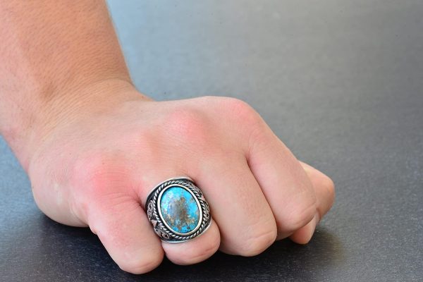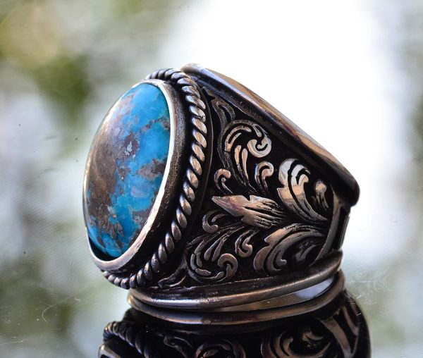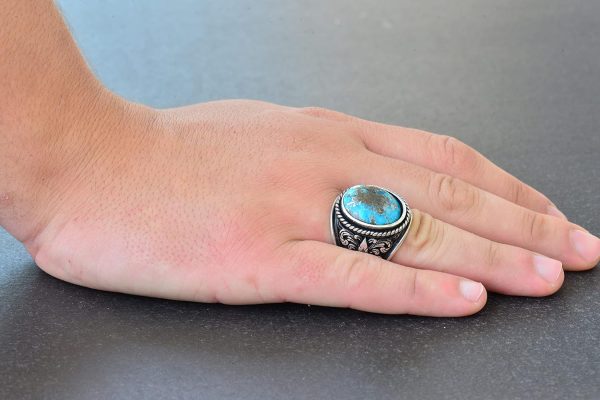 Gerçek Doğal Arizona Turkuaz Taş Yüzük – Gümüş Erkek Yüzüğü