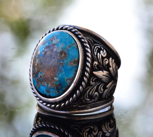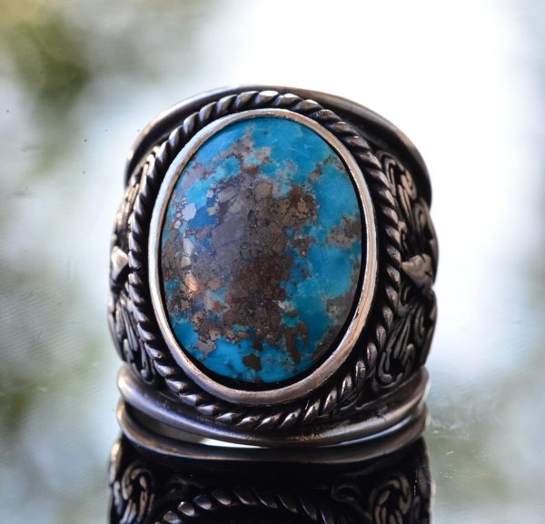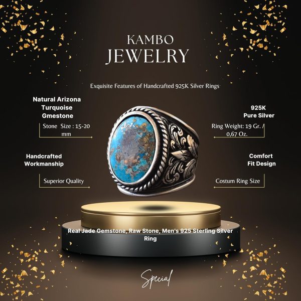 Yüzük, canlı mavi-yeşil tonları ve koruyucu özellikleri ile bilinen doğal Arizona Turkuaz taşını içerir. Her yüzük, Turkuaz’ın güzelliğini sergilemek için özenle tasarlanmıştır ve herhangi bir koleksiyonda dikkat çekici bir parça olmasını sağlar.