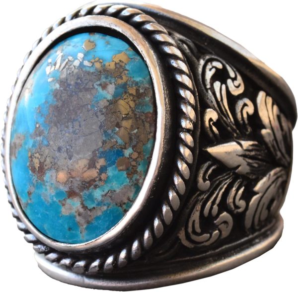 Gerçek Doğal Arizona Turkuaz Taş Yüzük, Sterlin Gümüş Erkek Yüzüğü
