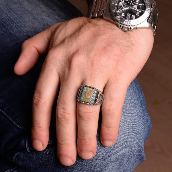 Gerçek Doğal Arizona Turkuaz Taş Yüzük – Sterlin Gümüş Yüzük – Özel Gümüş Yüzük