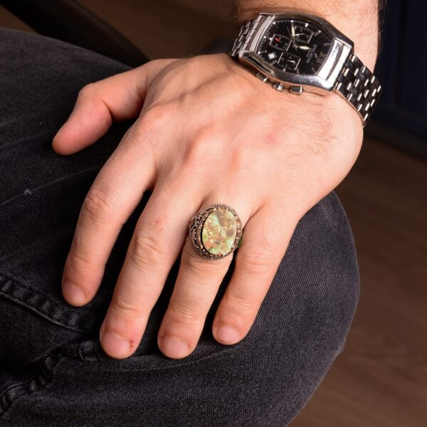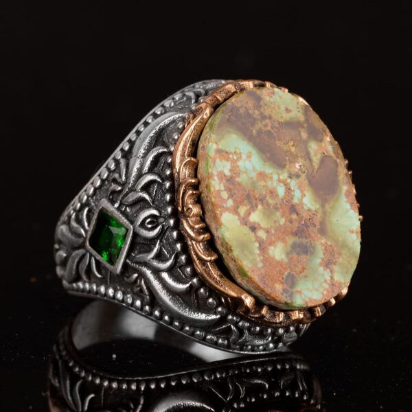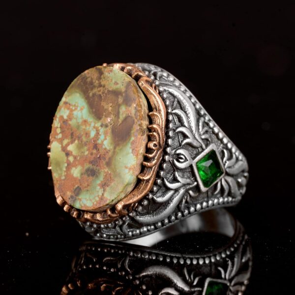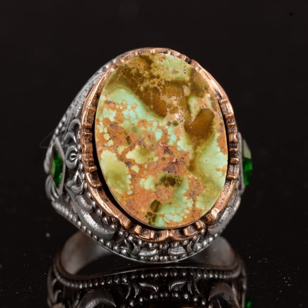 Gerçek Doğal Arizona Turkuaz Taşı Erkek Yüzüğü, El Yapımı Yüzük, 925 Ayar Gümüş Yüzük