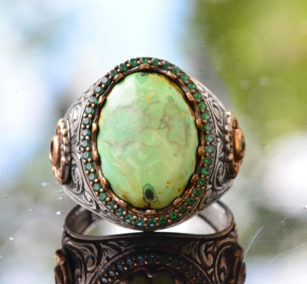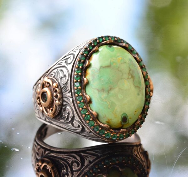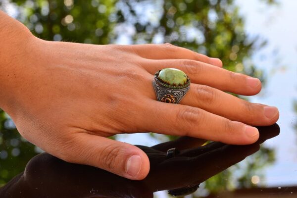 Gerçek Doğal Arizona Turkuaz Taşı Yüzük – 925 Ayar Saf Gümüş Doğal Arizona Turkuaz Taşı Erkek Yüzüğü