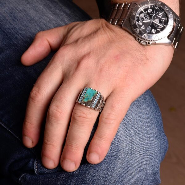 925 Ayar Gümüş erkek Yüzük etnik tasarım, Eşsiz El Yapımı Gümüş Yüzük. Taş Boyutu: 14-11 mm Ağırlık: 10.25 gr