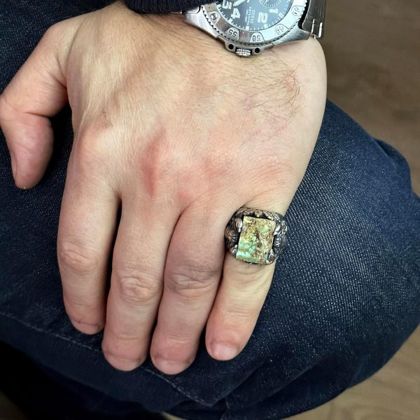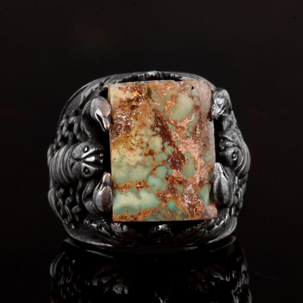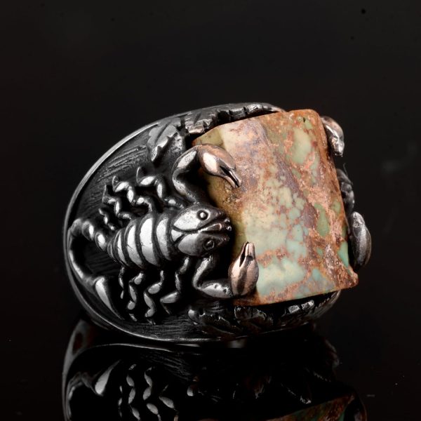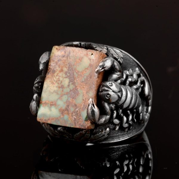 Gerçek Doğal Arizona Turkuaz Taşı Yüzük, Akrep Yüzüğü, Erkekler için Sterlin Gümüş Yüzük