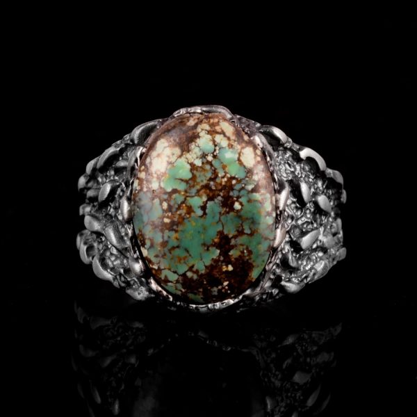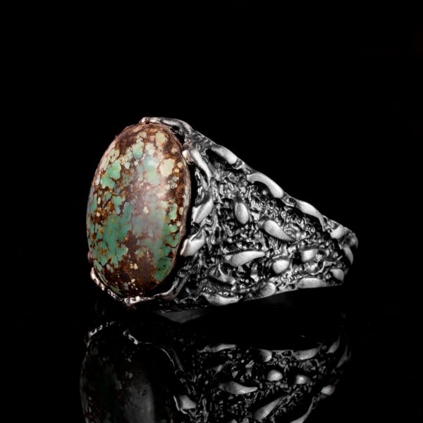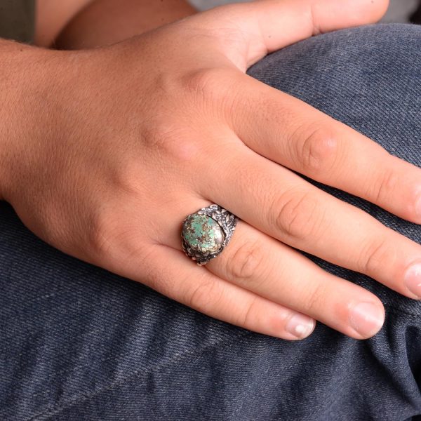 Gerçek Doğal Arizona Turkuaz Taşı Yüzük, Erkekler İçin Hediye, 925 Ayar Gümüş Yüzük, Minimalist Yüzük (Stil-9)