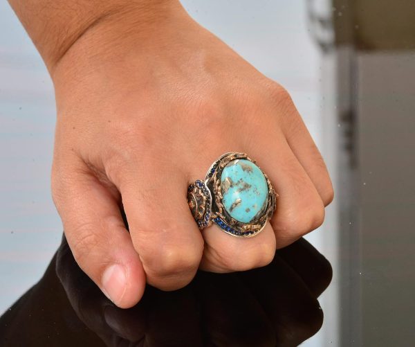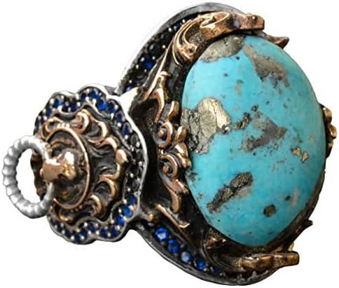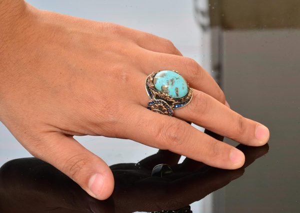 Gerçek Doğal Arizona Turkuaz Taşlı Aslan Yüzük, 13.75 Karat – Sterlin Gümüş Erkek Yüzüğü