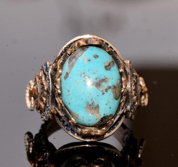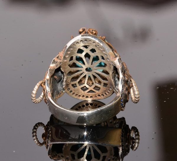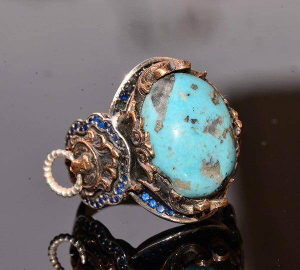 Gerçek Doğal Arizona Turkuaz Taşlı Aslan Yüzüğü – Gümüş Erkek Yüzüğü