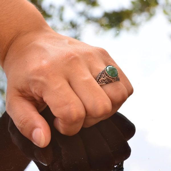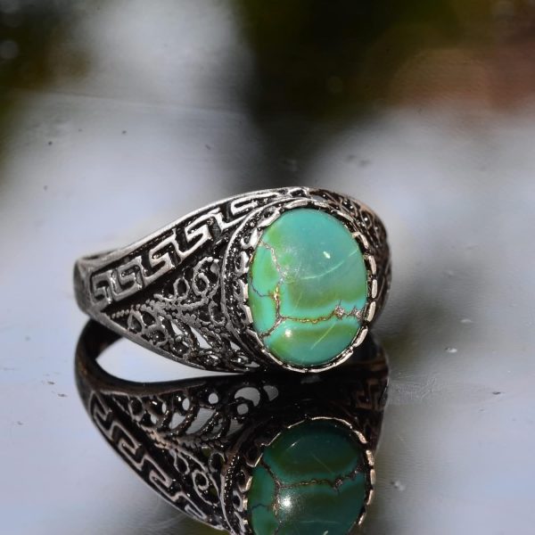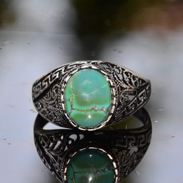 Gerçek Doğal Arizona Turkuaz Taşlı Erkek Yüzük, El Yapımı Mini Yüzük, 925 Ayar Gümüş Erkek Yüzüğü (Stil-1)
