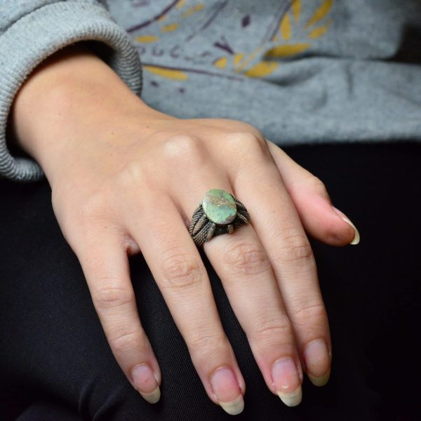 İster kıyafetinizi tamamlamak için bir ifade parçası arıyor olun, ister özel biri için anlamlı bir hediye, bu vintage tarzı turkuaz yüzük mükemmel bir seçimdir. Cesur tasarımı ve şifa özellikleri, onu her takı koleksiyonuna çok yönlü bir ek haline getirir.