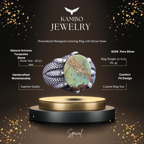 KAMBO Gerçek Doğal Arizona Turkuaz Taşlı Pençe Yüzüğü, özenle ve hassasiyetle hazırlanmış muhteşem bir takı parçasıdır. Bu yüzük, doğrudan Arizona’dan temin edilen canlı bir turkuaz taşına sahiptir ve yüksek kaliteli 925 Ayar Gümüşten yapılmış cesur ve benzersiz bir pençe tasarımında yer almaktadır.