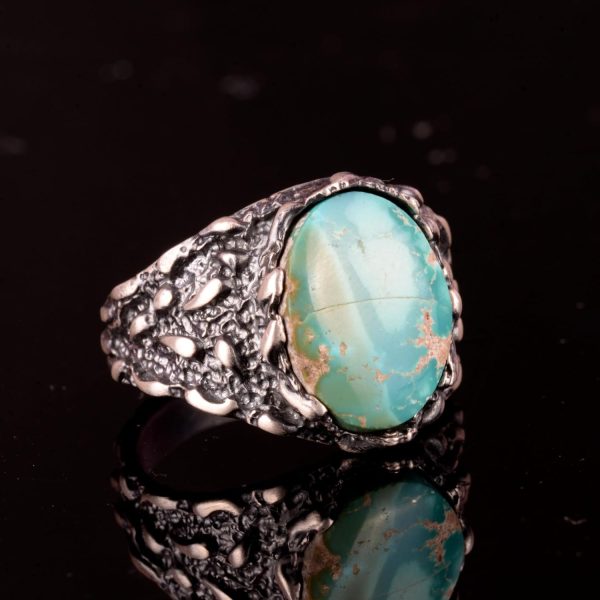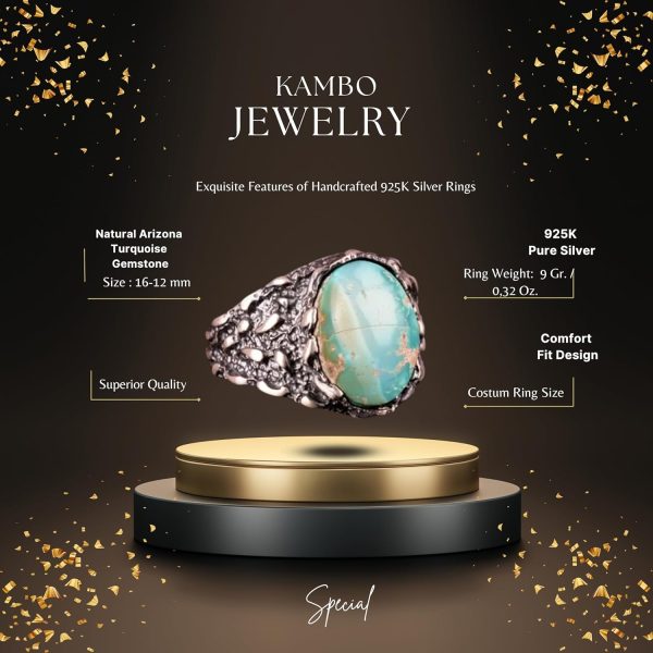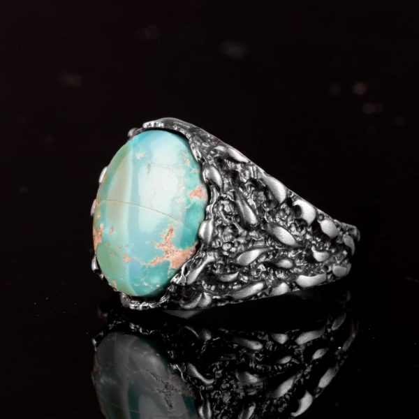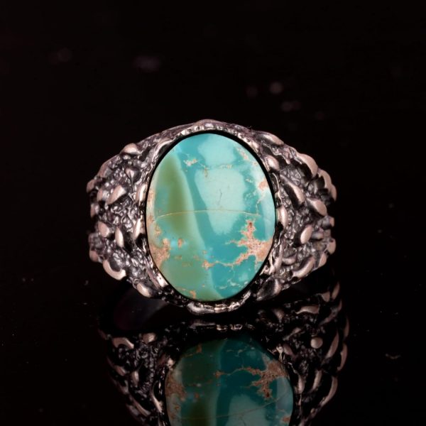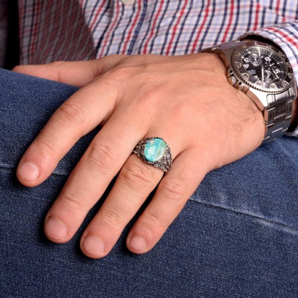 Gerçek Doğal Arizona Turkuaz Taşlı Yüzük, Erkekler İçin Hediye, 925 Ayar Gümüş Yüzük, Minimalist Yüzük (Stil-2)