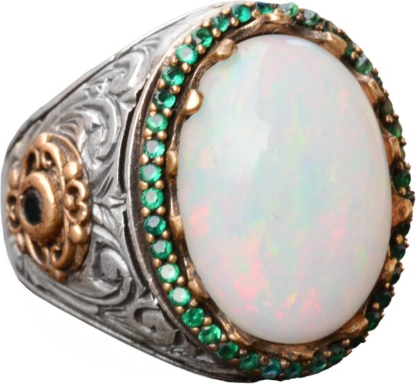 Gerçek Doğal Avustralya Opal Taş Yüzük, 7.55 Karat, Erkekler için Kral Yüzük, 925 Ayar Katı Gümüş Yüzük